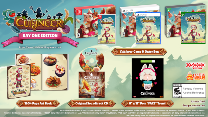 TORRANCE, Calif. — Jan. 28, 2025 — Marvelous Europe alongside XSEED Games and BattleBrew Productions announced Cuisineer, the roguelite-flavored dungeon crawler is now available digitally and in a limited physical release for the Nintendo Switch™ system, PlayStation®5, and Xbox Series X|S consoles. Elevating its lauded recipe on PC, the beloved roguelite/restaurant sim now plates its enticing gameplay with fresh ingredients including a scrumptious new wardrobe feature, year-round festivals, and additional sizzling weapons and boosts that are sure to spice things up.